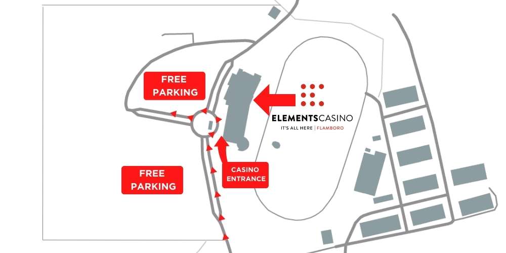 FOR DIRECTIONS FROM NIAGARA FALLS Elements Casino Flamboro is approximately 1 hour and 15 minutes from Niagara Falls. Head north on the Queen Elizabeth Way to ON-6 North in Hamilton. Take the exit 74 from Ontario 403 West. Continue on ON-5 the Casino will be on your right-hand side.