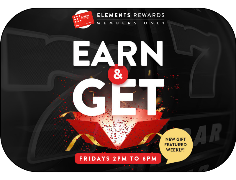 Every Friday from 2pm to 6pm at any Elements Casino! Play with your Elements Rewards Card at any slot machine and earn 500 Reward Points and get the featured gift of the week! Every week has a different featured gift!